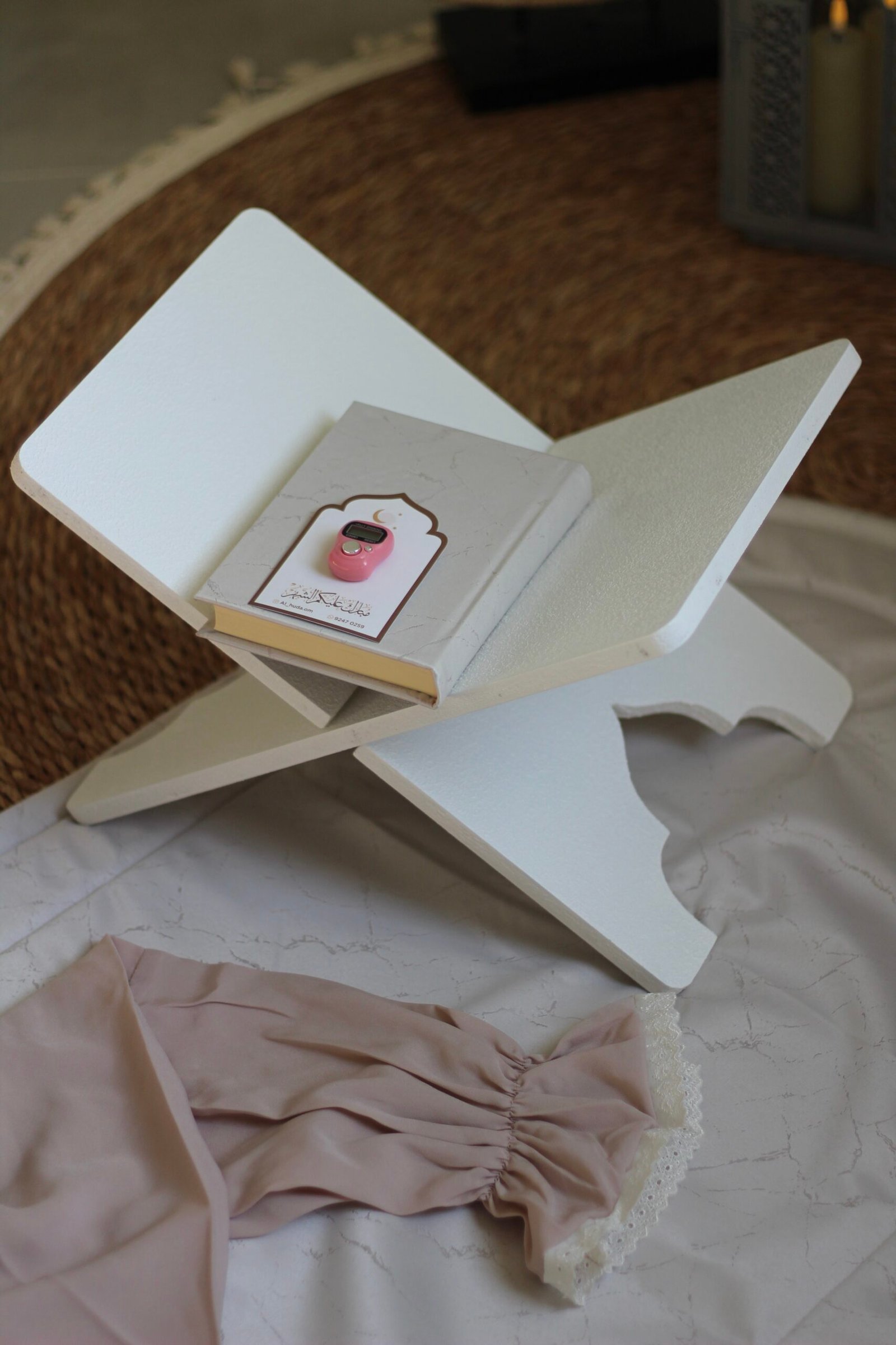 محتوى الطقم (مصحف مغلف ، لبس صلاه واسع فضفاض بطول ٥٨ سانتي ، سجاده مبطنه إسفنج )